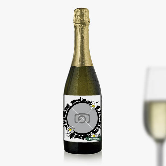 oder Proseccoetikette mit Foto, Bild und Text.