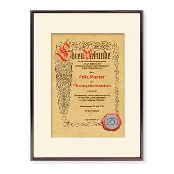 Ehren Sie ein Vereinsmitglied, Mitarbeiter oder Familienmitglied mit einer ganz persönlichen Ehrenurkunde.