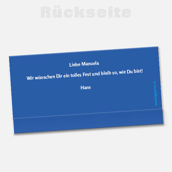 Schokoladen-Wickel mit eigenem Text und Foto.