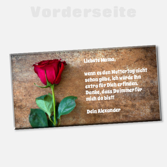 Schokoladen-Wickel mit eigenem Text und Foto.