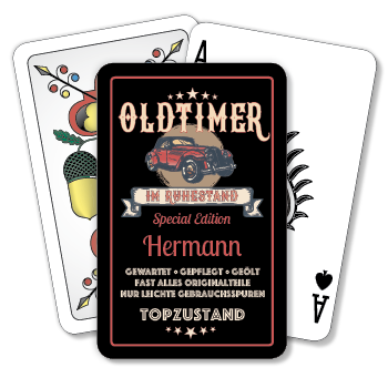 Pokerkarten "Oldtimer im Ruhestand" personalisierbar mit eigenem Namen