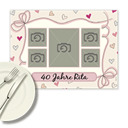Suchen Sie ein spezielles Tischset, ein witziges Tischset, ein Tischset mit Platz für viele Fotos, ein Tischset für ein Geburtstagsfest, ein Tischset für ein Jubiläum? Bei digitprint.ch können Sie Ihr persönliches Foto-Tischset bequem online gestalten und bestellen. Wählen Sie aus vielen Motiven aus und laden Sie Ihre Lieblingsfotos hoch.Ob bei der Gartenparty, Geburtstagsfest, zur goldener Hochzeit oder am einfach am Familientisch: mit eigenen Foto-Tischsets können Sie Ihren Tisch immer perfekt decken. So haben Sie für jeden Anlass die passenden Tischsets.