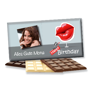 Eine süsse Geburtstagsüberraschung ist eine Schokolade mit den besten Wünschen, süss verpackt um eine Lindt-Schokolade. Ganz einfach Name und Wunschtext eingeben, vielleicht noch ein passendes Foto dazu hochladen und fertig sind diese süssen Geburtstagswünsche, Sie können die Geburtstags-Schokolade auch gleich direkt an den Empfänger oder die Empfängerin senden lassen. So geht gratulieren!
