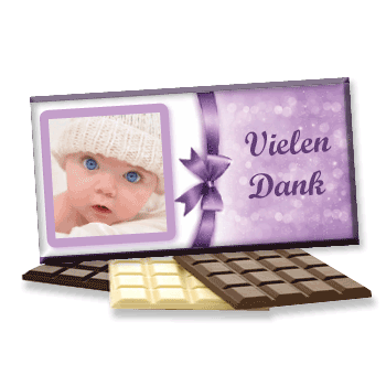 Nutzen Sie die Foto-Schokolade um Danke zu sagen, als Geburtstagsgruss, Muttertagsgeschenk, Weihnachtsüberraschung oder als süsse Liebeserklärung zum Valentinstag. Edel verpackt, macht Ihr persönlicher Schokoladengruss auf der Banderole diese süsse Überraschung zum perfekten Geschenk.