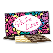 Sie möchten auf besondere Weise Danke sagen? Warum nicht mit einer Schokolade mit persönlicher Widmung. Wählen Sie die passende Vorlage aus unserem grossen Sortiment aus. Den Text können Sie ganz einfach online in unserem Editor eingeben. Sie können diese Dankes-Schokolade auch gleich direkt an den Empfänger senden lassen.